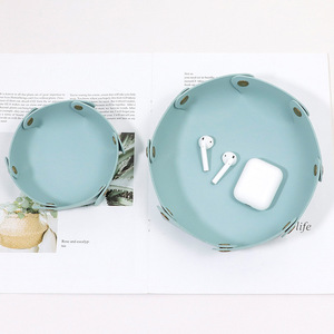 厂家直发韩版按扣式折叠圆形收纳盒桌面首饰收纳皮革托盘化妆品钥