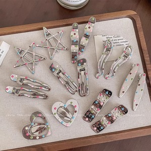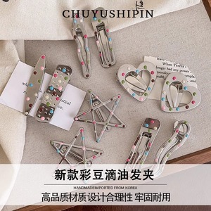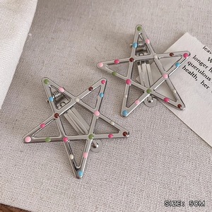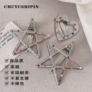 闪亮银星滴彩波点鸭嘴发卡侧边刘海夹金属五角星头饰新款式