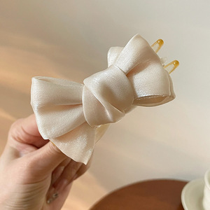 高端网纱蝴蝶结鲨鱼夹大号抓发夹女后脑勺盘发饰优雅发卡头饰夹子