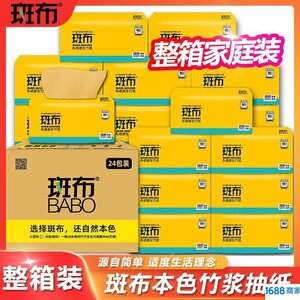 斑布抽纸整箱6-24包家用本色餐巾纸班布纸巾竹浆母婴