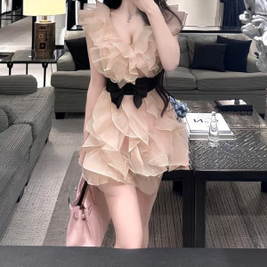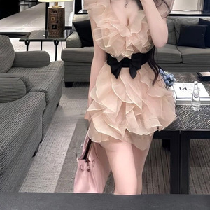 法式时尚洋气小众设计荷叶连衣裙夏季新款收腰显瘦气质公主长裙女