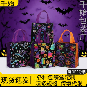 プリントショッピングトートバッグ、カラフルなハロウィーン立体ラミネートバッグ、パーティー不織布バッグ、卸売防水テイクアウトバッグ