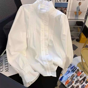 2025 夏の新スタイル多用途トレンディなファッションレトロスタンドカラーリトルレースライトスリーブシャツ女性のための新しいスタイル