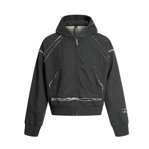 Jiayiku メンズ 2025 秋の新アメリカンレトロ破壊パーカージャケットデザインカーディガンジッパートレーナー