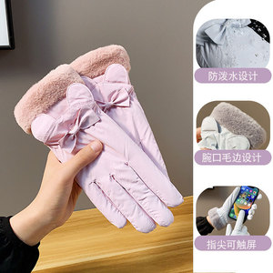 秋冬用の暖かい手袋、ベルベットの厚みのある肌ざわりの生地、防風性と撥水性のアウトドアスポーツスキータッチスクリーン手袋