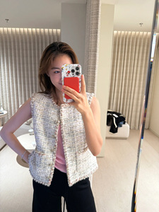 2025A 秋冬新作 ライトアプリコットウール混織ノースリーブツイードウールベスト 91001