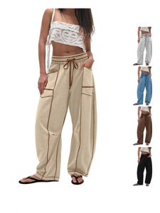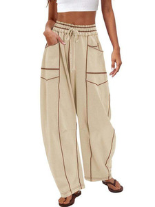 2025 越境ホット販売女性のルーズワイドレッグパンツカジュアル夏ワイドレッグパンツ巾着ウエストカジュアルパンツスウェットパンツ