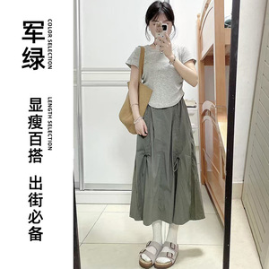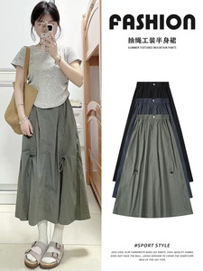 美式复古伞兵工装半身裙女夏季2025新款高腰显瘦a字速干运动长裙