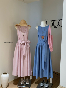 WGWE 夏の女性のフレンチスタイルのハイエンド西洋スタイルウエスト痩身ノースリーブラウンドネックベストドレス W6390