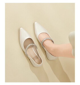 Gomeqi の新しいメリージェーンシューズ 2025 秋フレンチスモールレザーシューズカジュアルワンラインラインストーン浅い口の靴女性用