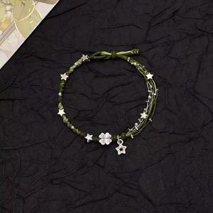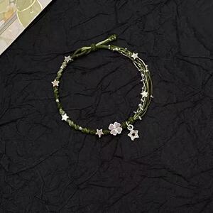 ラッキースター四つ葉のクローバー手編みロープブレスレット女性用、牧歌的なスタイルのブレスレット、夏の新鮮でシンプルで多用途なブレスレット
