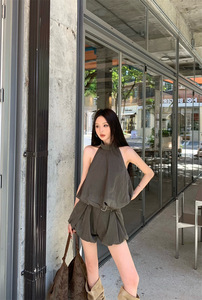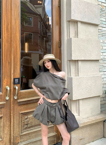 女性のサマースーツオフショルダーホルターネックベスト気質ホットガール斜めショルダートップ女性のハイエンドデザイン花のつぼみショーツ