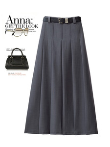韓国風スーツスカートレディースハイウエスト新作万能着痩せプリーツミドル丈AラインロングスカートレディースA4838