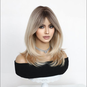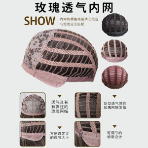 跨境新品热销款深金挑色八字刘海高温丝玫瑰网头套欧美假发女wig