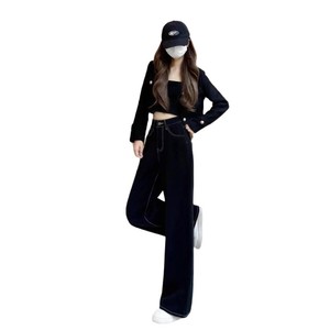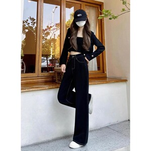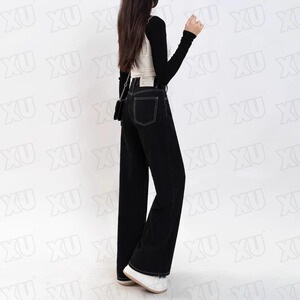 黑色阔腿牛仔裤女春季新款梨形身材大码高腰宽松显瘦百搭直筒长裤