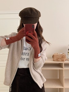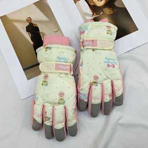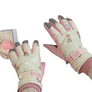 秋冬新款滑雪手套时尚卡通小熊印花可爱软萌学生高颜值毛绒手套