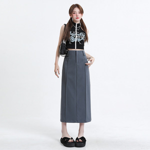 グレーハイウエストミッドスカート女性のための 2025 夏の新スリムカレッジスタイルスーツワンステップスカート