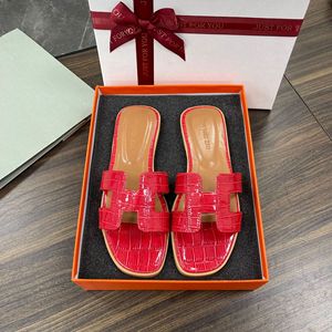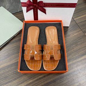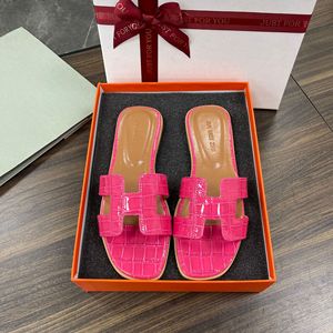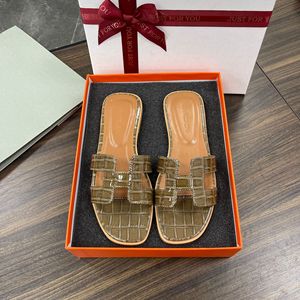 在庫あり〜外国貿易サンダル女性用 2025 夏の新しいファッションアウターウェアビーチフラット H スリッパワニ柄