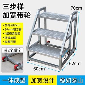 幅広タイプ(幅60cm)ネジ組立簡単・設置簡単 三段はしご(高さ70cm)後輪付き大荷重