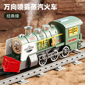 复古仿真儿童电动小火车万向蒸汽动车男孩红绿皮车模型生日礼物