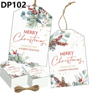 50 個のクリスマスギフトタグ ロープ付き、クリスマスツリー クリスマスホリデーハングタグ 水彩植物ウィッシュタグ