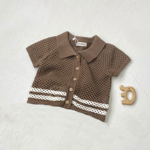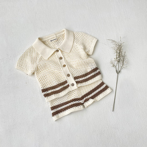 2025 夏ベビー中空ラペルニットフックパターンセーターカーディガン + ショーツスーツベビーセータースプリット男性