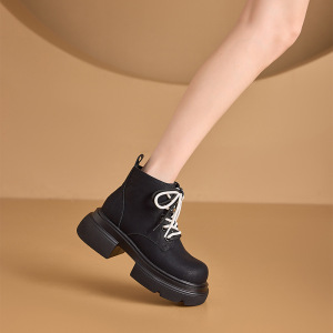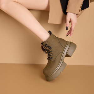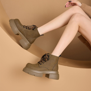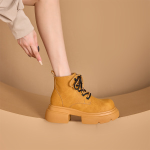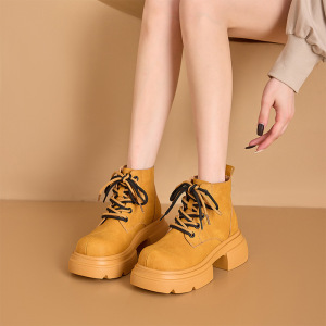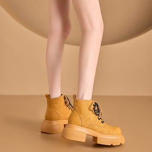2025秋季新品真皮马丁靴女欧洲站英伦风系带机车短靴厚底大黄靴女