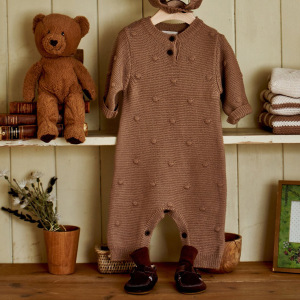 2025秋款新生儿衣服婴儿复古波点长款连体衣毛衫婴童宝宝毛衣爬服