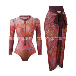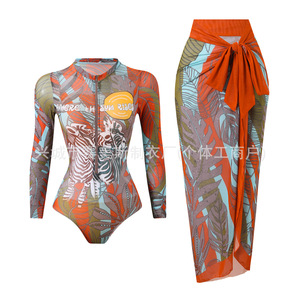 2025 長袖日焼け止めロシア水着女性ヨーロッパとアメリカのクロスボーダーサーフィンスーツビーチスカートКупальни