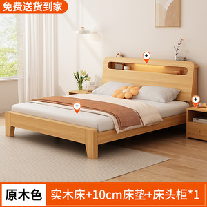 实木床简约现代1.5米双人床主卧1.8m出租房家用储物1.2米单人床架