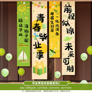 2-卒業シーズン吊り下げ布バナー装飾2+リボンバルーン