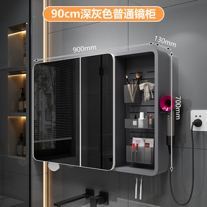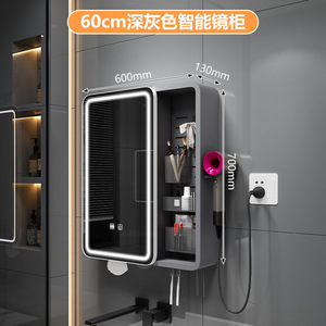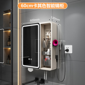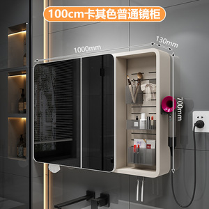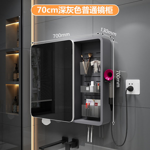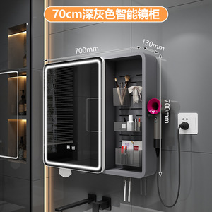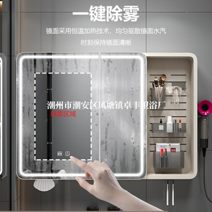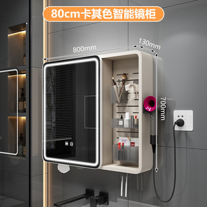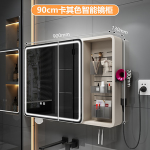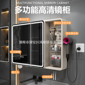 储物镜柜带灯美妆挂墙式储物浴室镜子圆弧收纳功能浴浴室智能镜柜