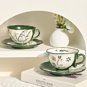 クリエイティブレトロインスタイル高価値窯変新製品ニッチ手描きパターン家庭用セラミックコーヒーカップとソーサー
