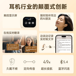 AI インテリジェント対面翻訳 Bluetooth ヘッドセット リアルタイム音声転写 タッチスクリーン操作 耳掛けワイヤレスヘッドセット