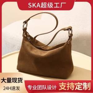 高シルケットフロスト牛革レトロ高級枕バッグ大容量通勤本革ショルダーバッグ脇の下クロスボディバッグ