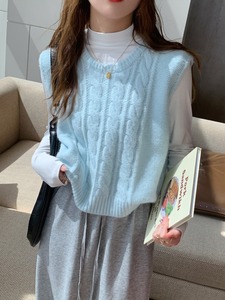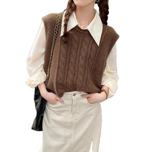 女性用ニットベスト、秋の新作、フレッシュ、ルーズ、レイジースタイル、ノースリーブ、レイヤード、アウターベスト
