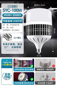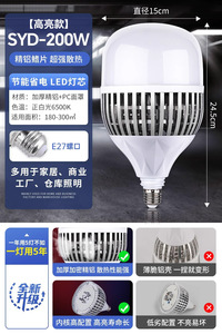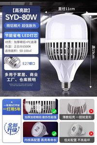 LED大功率灯泡螺口E27家用超亮球泡灯强光工地厂房车间节能照明灯