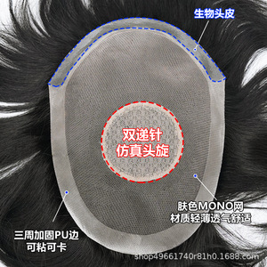青島通気性メンズウィッグ、完全人毛ヘアピース、頭頂部補充用ヘアピース、完全手織りヘアピース、通気性があり軽量