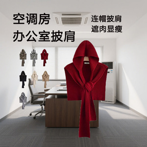 韩国连帽围巾一体针织披肩女宽松纯色百搭搭配大衣假领子毛线围脖