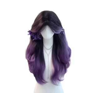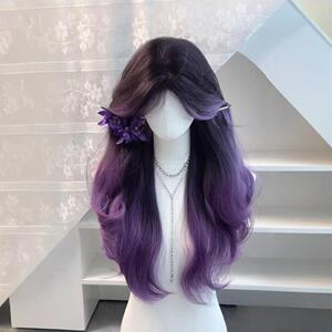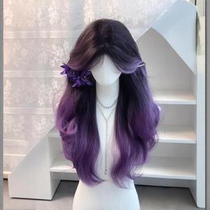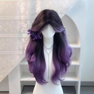 【免戴发网】假发头套新款仿真紫色挑染长卷发大波浪刘海长款