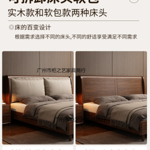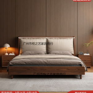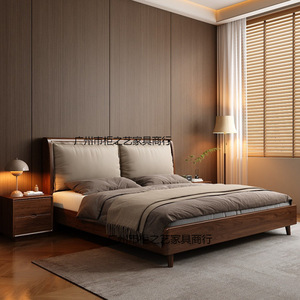 北美黑胡桃全实木床软靠包床北欧轻奢主卧婚床1.5m1.8米单双人床