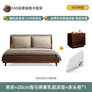 单床+20cm弹簧乳胶床垫+床头柜*1 软包可拆卸/黑胡桃框架