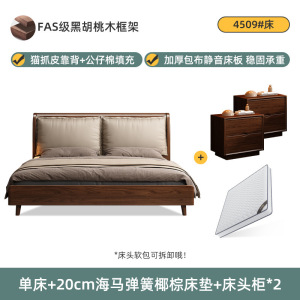 单床+20cm弹簧椰棕床垫+床头柜*2 软包可拆卸/黑胡桃框架