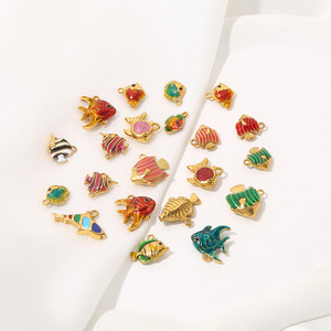カラフルなオイルドリップ加工ステンレス鋼小魚ペンダントオーシャンスタイル DIY ジュエリーアクセサリーブレスレットネックレスペンダント素材