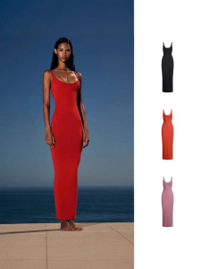 SKIMS ラウンドネックサスペンダーワンピース ロングスカート SMOOTH LAYERS SCOOP NECK LONG