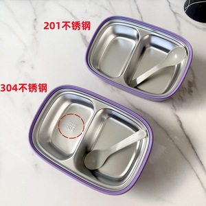 食品级304不锈钢饭盒儿童小学生便当盒卡通上班族分格保温午餐盒