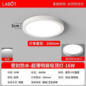 防水led吸顶灯厨房卫生间厕所洗手间阳台专用户外屋檐过道照明灯