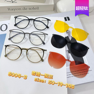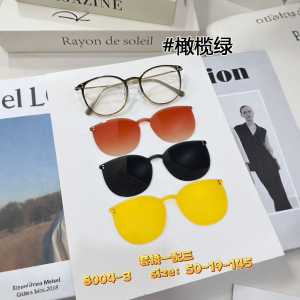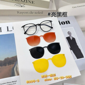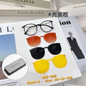 8004网红新款磁吸墨镜女韩式潮流椭圆三合一套镜骑行可配近视眼镜