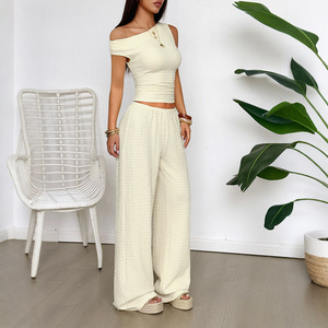 Diyun ヨーロッパとアメリカのカジュアル休暇ベストワイドレッグパンツツーピーススーツ婦人服 2025 春夏アマゾン独立ステーション