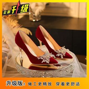 ファッショナブルなブライダルシューズ、薄いヒール、疲れにくいレディースシューズ、2025春夏の新しいスタイル、美しい赤いハイヒール、女性用ツーウェア
